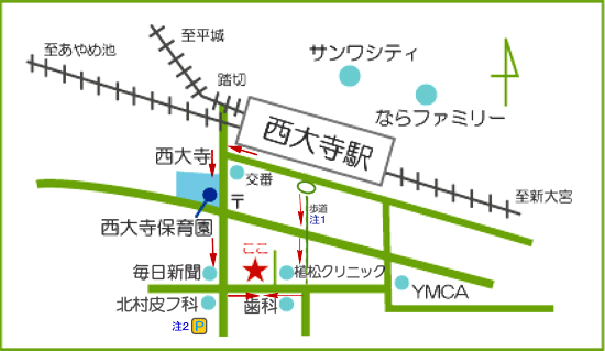 当院まで西大寺駅南口より徒歩7分(約500m)